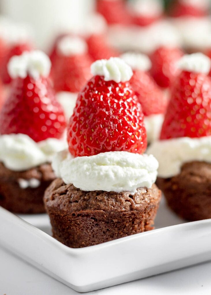 L’assemblage de ce bonnet est un véritable jeu d’enfant. Une fois votre base de brownie prête, déposez généreusement une couche de crème chantilly sur toute la surface. Ensuite, choisissez une belle fraise, lavez-la et équeutez-la avant de la poser, pointe vers le haut, au centre de la crème. La dernière touche, et non la moindre, consiste à déposer une petite noisette de chantilly sur la pointe de la fraise pour figurer le pompon. L’illusion est immédiate et l’effet garanti.